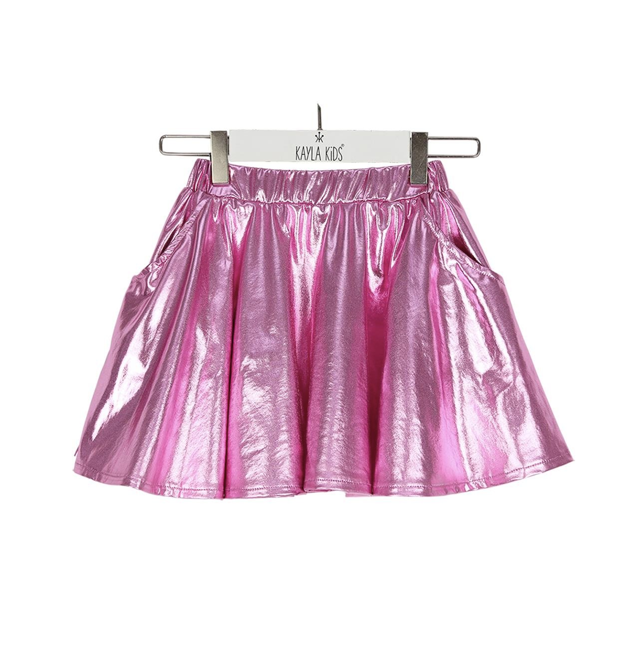 Pembe metalik volanlı etek